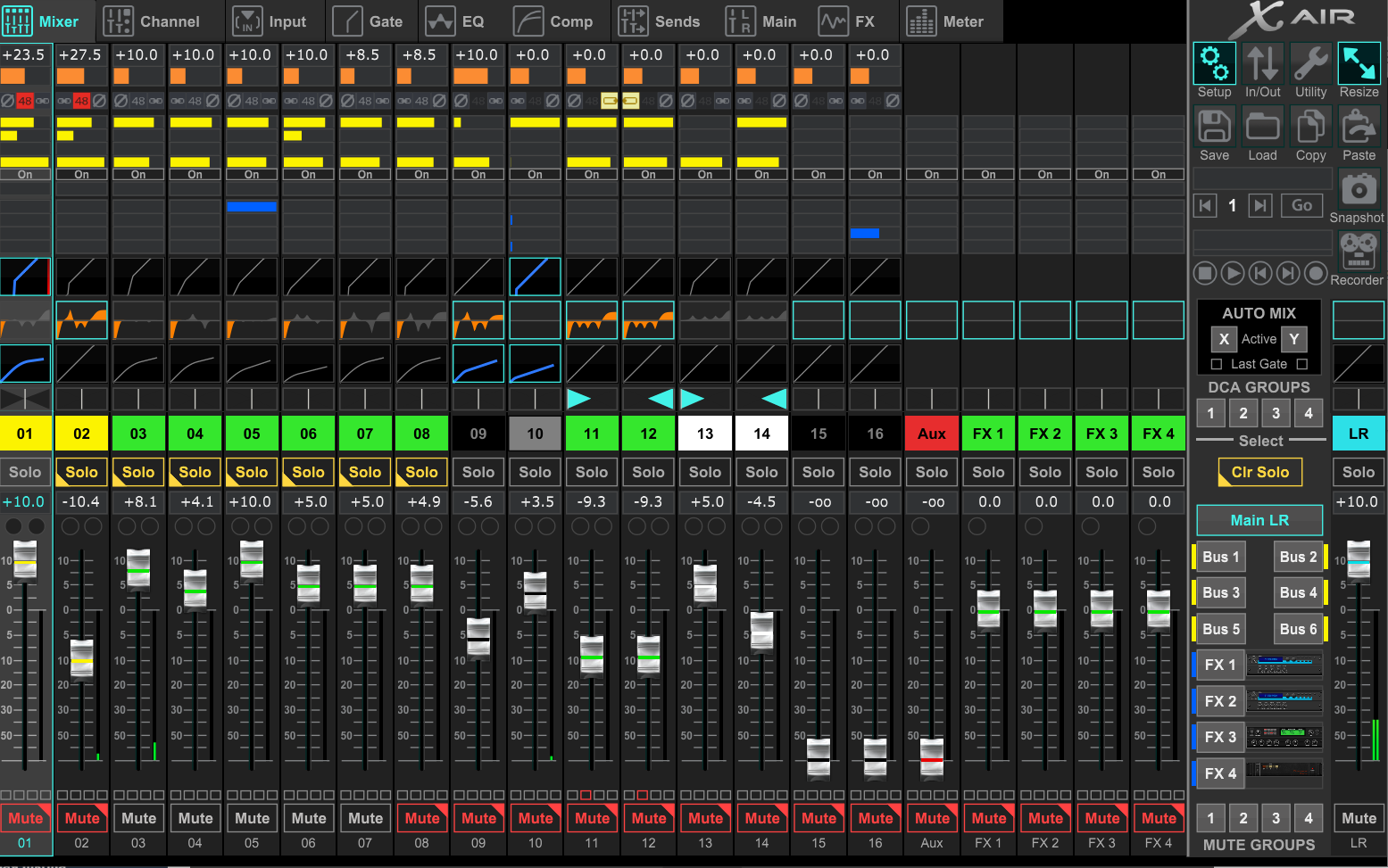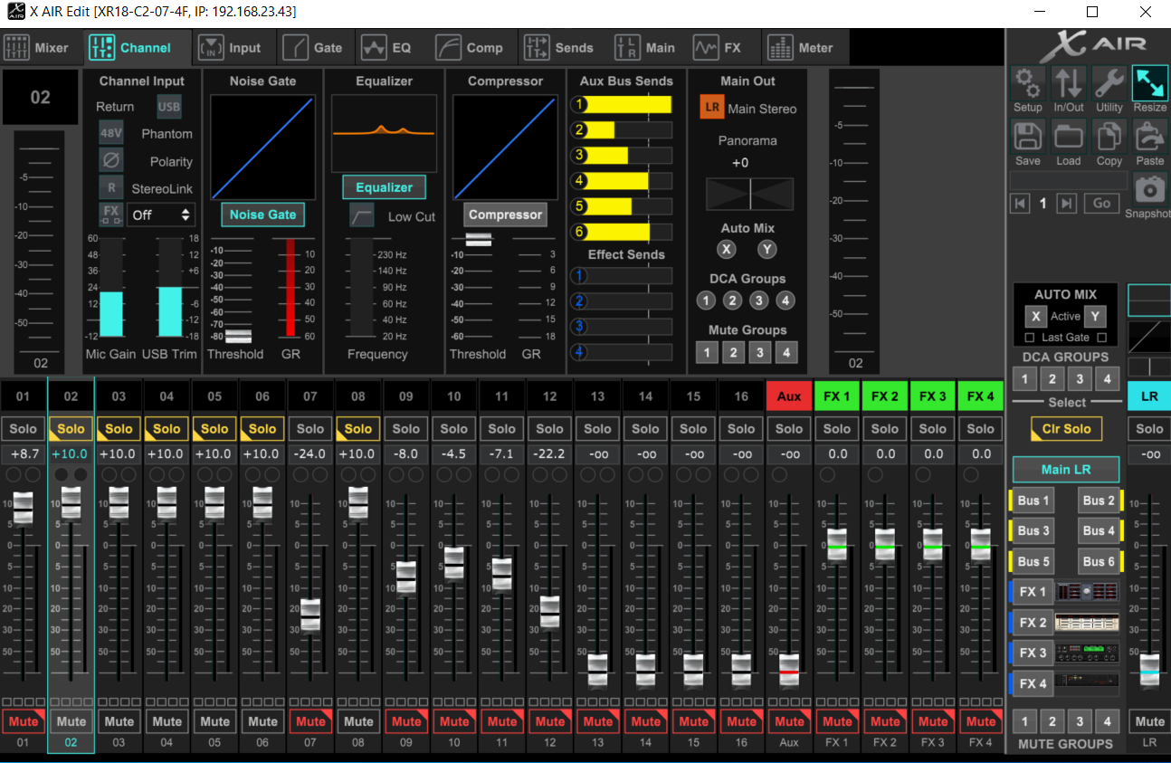 Если необходимо увеличить громкость одной дорожки в программе X AIR Edit выбираем нужную нам дорожку(ее рамка станет голубой), заходим во вкладку Channel и в разделе Channel Input изменяем Mic Gain.