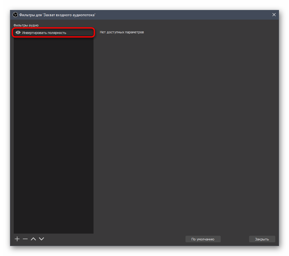 Первый фильтр используется только в случае записи одного и того же источника звука при помощи двух микрофонов. Он позволяет устранить проблемы с отменой фазы, наладив нормальную передачу волн с нескольких устройств. Дополнительных параметров у этого фильтра нет и он активируется сразу же после добавления в список.