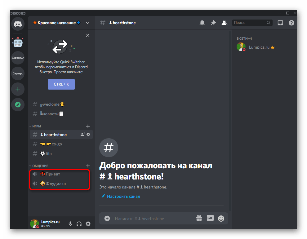 - Переход к голосовым каналам.