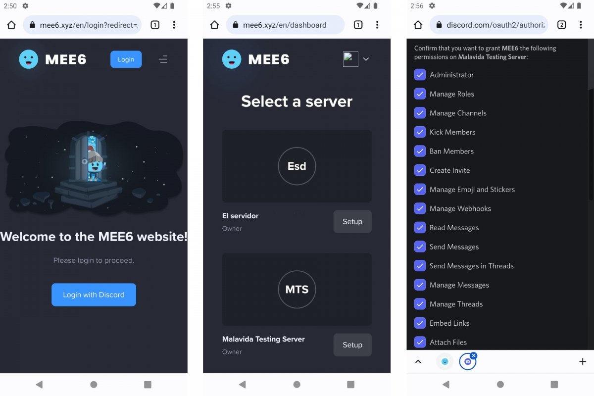 Помимо ручного назначения ролей, мессенджер предлагает возможность распределения пользователей на сервере по категориям в соответствии с их статусом, отображаемой активностью и накопленным «опытом». Автоматизация настраивается с помощью бота MEE6, который загружается с неофициального сайта, но предоставляет набор настроек для модерации, пересылки предупреждений и уровней выбросов.