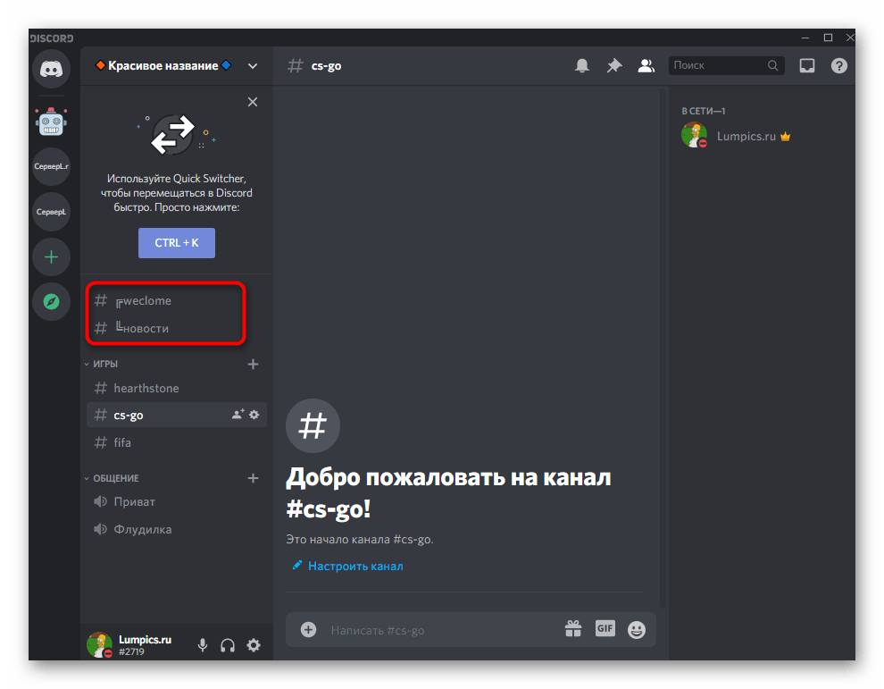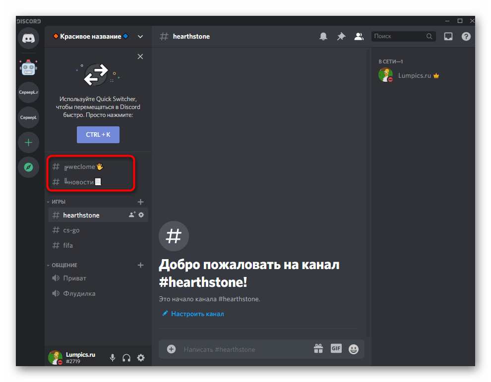 Названия каналов также можно оставить как обычно, но иногда дополнительные символы или смайлы дают отличный эффект, который расскажет пользователю, о чем канал, или просто улучшит внешний вид сервера.