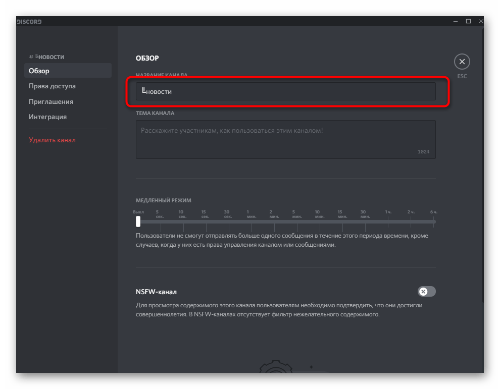 Введите название канала в поле «ИМЯ КАНАЛА».