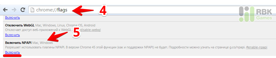 - Найдите пункт Включить NPAPI и нажмите Включить;