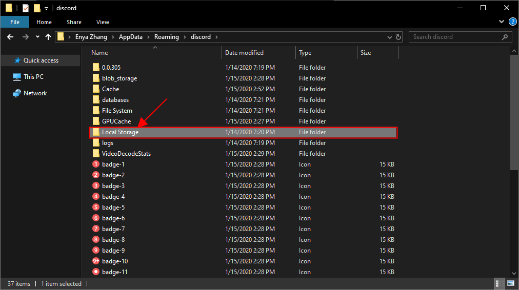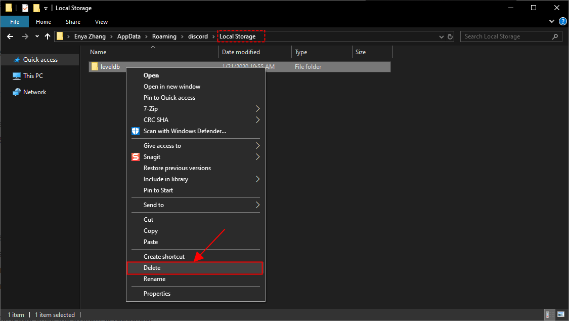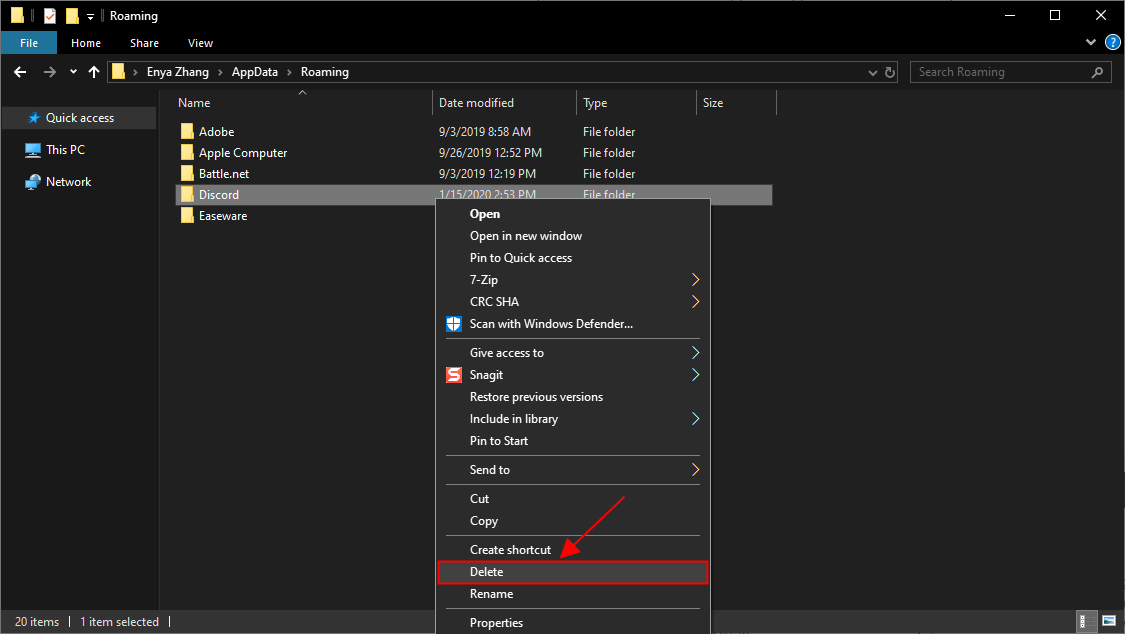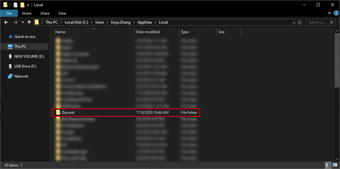 - Among the list of folders and files, look for the folder named ‘discord’ and then delete it.