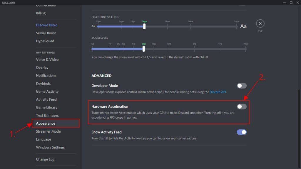 Аппаратное ускорение – это функция Discord, которая задает графическому процессору всю графику и рендеринг текста, тем самым обеспечивая более плавную работу с Discord. Однако, если Discord на вашем компьютере продолжает сбой при включенной этой функции, вы можете попытаться отключить ее, чтобы посмотреть, решит ли она проблему.