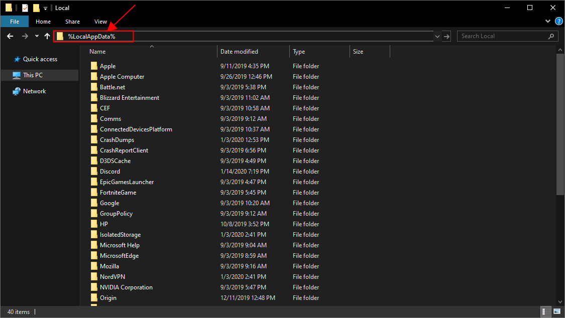 3) В адресной строке введите % LocalAppData% и нажмите Войти .