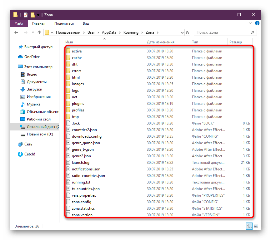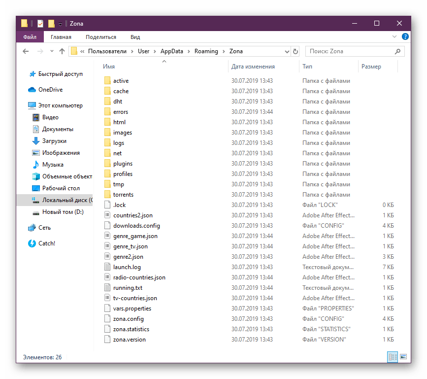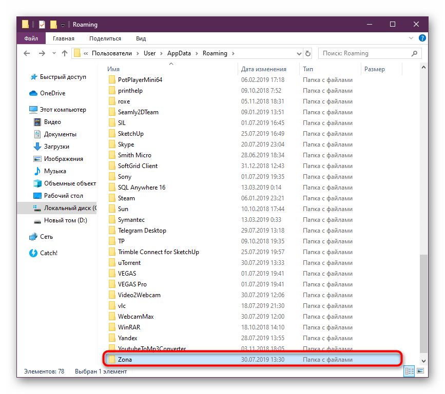 При установке Zona в определенной системной папке формируется отдельная директория, куда помещаются конфигурационные и прочие объекты, отвечающие за применение параметров и нормальную работу софта. Иногда случаются такие ситуации, что трудности с запуском заключаются именно в том, что какой-то из файлов не был установлен или это произошло не совсем правильно. Узнать, какой это был файл, практически невозможно, из-за чего просто проще выполнить очистку директории и доверить софту повторно инсталлировать данные компоненты.