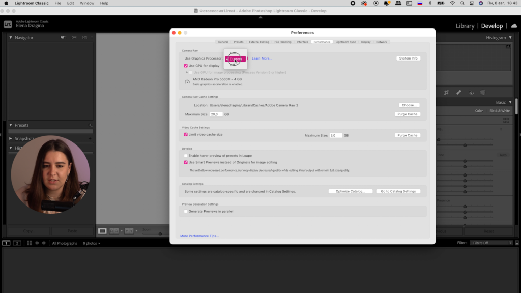 Ставим галку напротив Использовать смарт-превью вместо оригинала для редактирования изображений (Use Smart Previews instead of Originals for image editing)