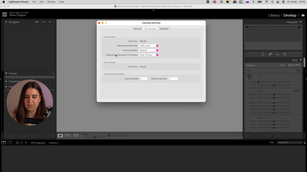 Открываем Lightroom. Создаем новый каталог для обработки файлов. Называем его «Фотосессия 1» (или любым другим названием) и назначаем папку для его хранения.