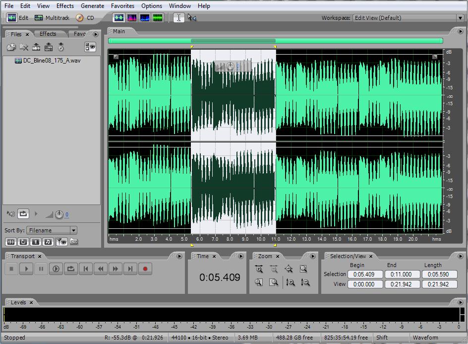Adobe audition редактор поддерживает спектральный анализ звука, функция очень удобная для выделения различного рода колебаний и его последующего усиления или подавления. Конечно же, приложение работает и с стандартным форматом Waveform View.