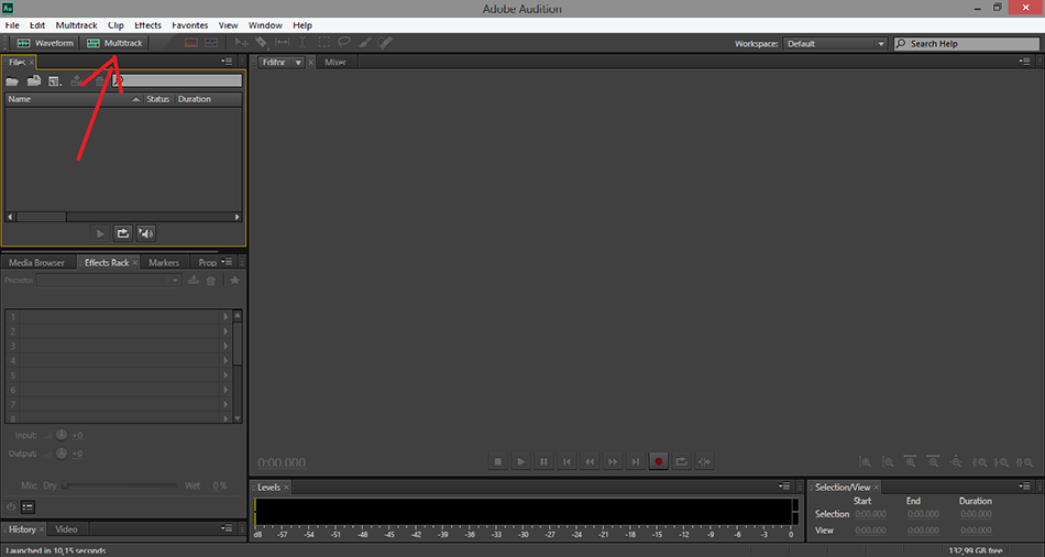 Для записи нам понадобится Adobe Audition, с помощью которого мы и будем улучшать звучание нашей записи. Итак, открыв программу, перейдите во вкладку Multitrack. В табличке, которая появится после перехода, введите имя сессии и различные настройки (если же не знаете, что делать с настройками, оставьте все, как есть) и нажмите ОК.