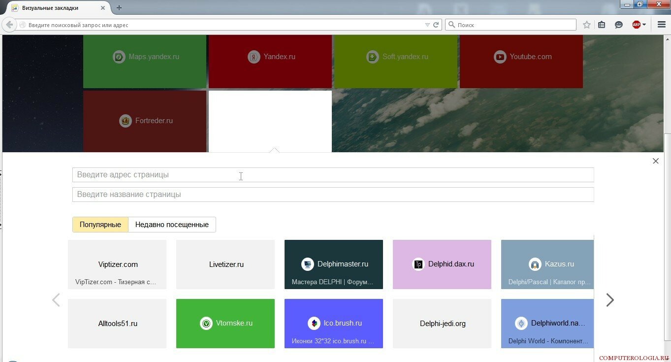 Для того чтобы самые любимые ваши сайты были представлены в виде картинок, а не просто списком, были созданы визуальные закладки Яндекса.
