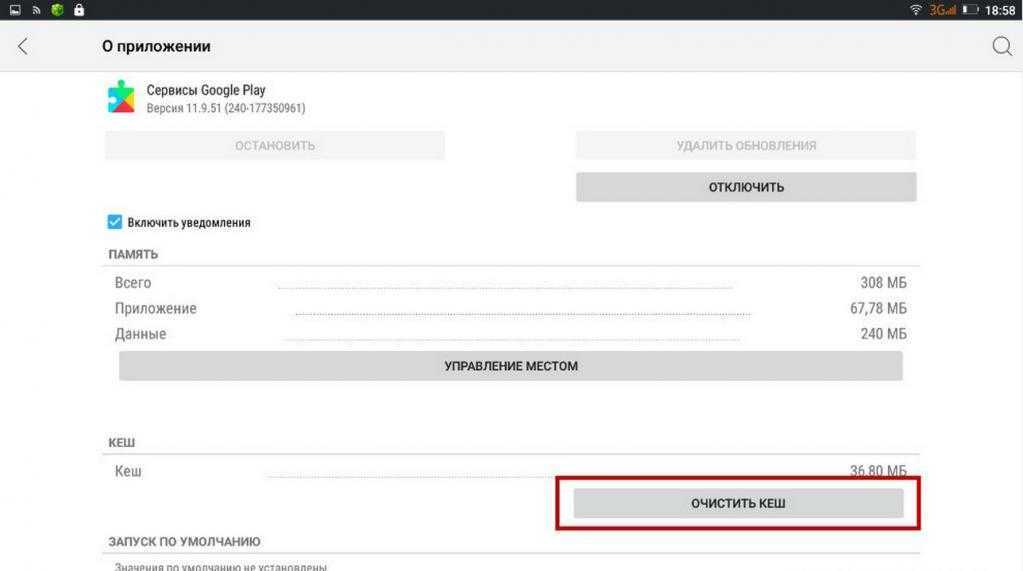 Информация в кэше, тоже может стать причиной появления ошибок в работе приложения «Сервисы Google Play». Для очистки кэша и удаления обновлений: