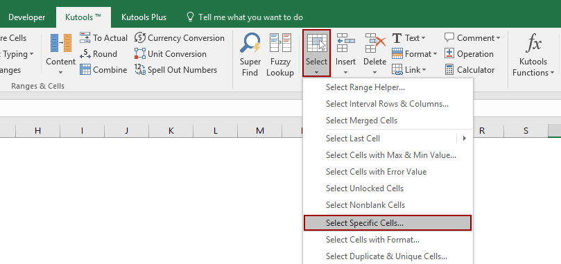 2. Нажмите Kutools > Выберите > Выбрать определенные ячейки.