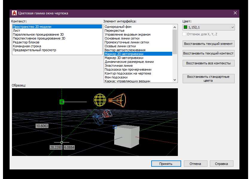 - будьте внимательны – здесь же Autocad позволяет настраивать и само появление маркера; он, конечно, по умолчанию установлен, что очень полезно, но если появление маркера отменить, то режим будет работать по-прежнему, но вам трудно будет это почувствовать, поэтому этот переключатель лучше не сбрасывать.