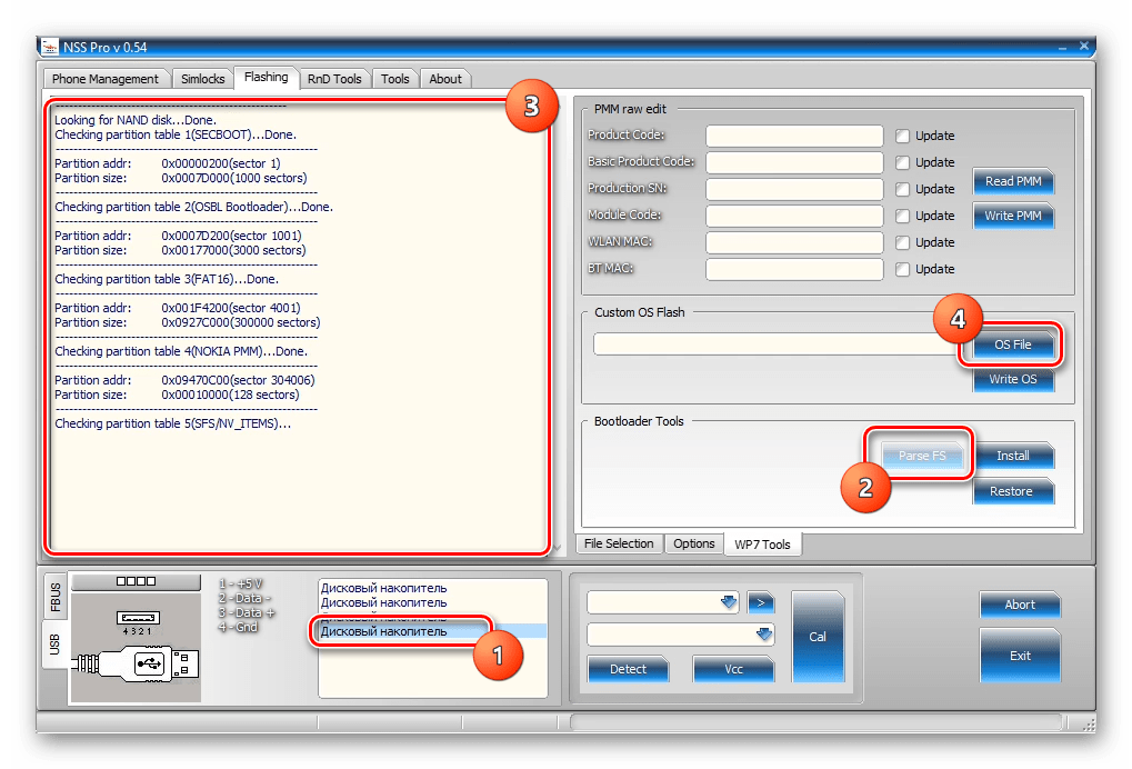 Для того чтобы приложение-прошивальщик могло взаимодействовать с памятью смартфона, последний должен быть подключен к ПК в специальном режиме – «OSBL-Mode»