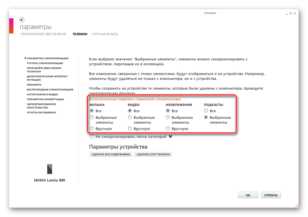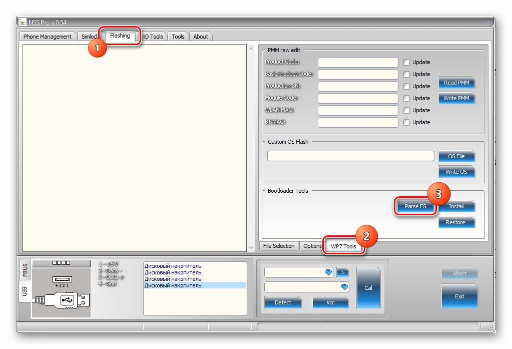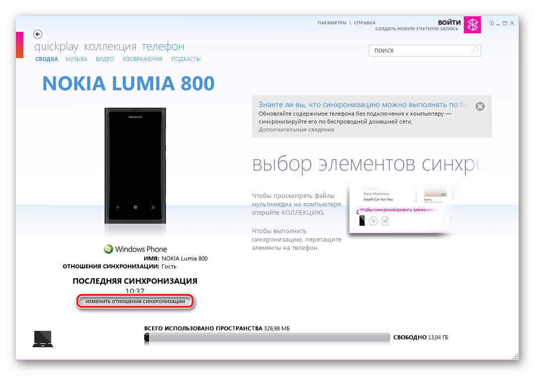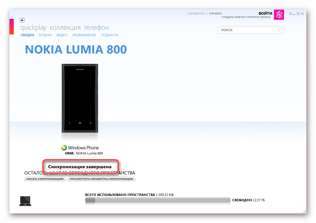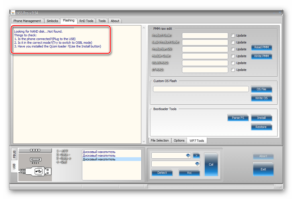 Запускаем приложение и подключаем Nokia Lumia 800 к ЮСБ-порту ПК.