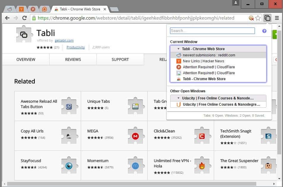 Табли улучшает возможности управления вкладками Chrome несколькими способами. Например, в нем могут быть перечислены все открытые вкладки и ограничения активации во всех окнах Chrome, чтобы вы могли перейти на вкладку одним щелчком мыши.