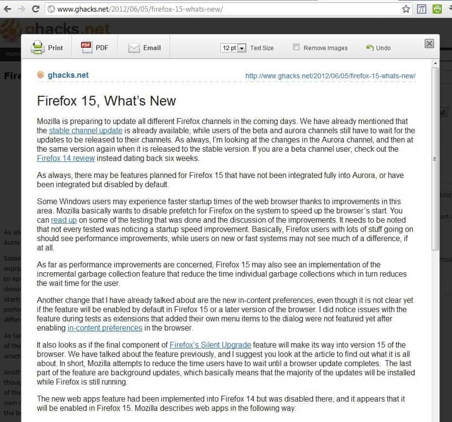 Это расширение для браузера преобразует статьи и контент на веб-сайтах в лучший формат для печати. Это достигается путем удаления со страницы элементов, которые обычно не требуются. Кроме того, страницу также можно преобразовать в документ pdf.