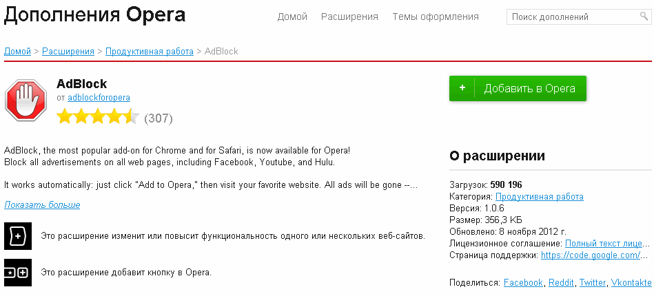 Для установки перейдите по этой ссылке и нажмите кнопку «Добавить в Opera»: