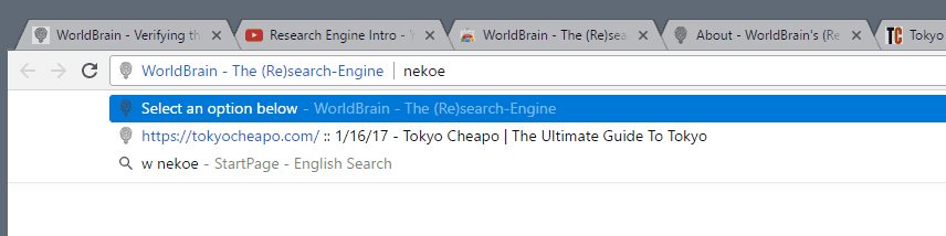 WorldBrain — это расширение Chrome, которое улучшает результаты при вводе в адресную строку браузера. Он находит элементы на основе заголовка страницы, URL-адреса и содержимого, в отличие от самого Chrome, который находит элементы только на основе первых двух значений.