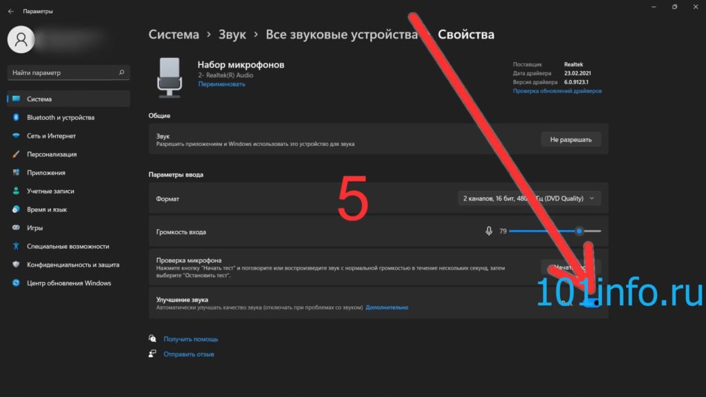 - В открывшемся экране найдите вкладку «Микрофон»;