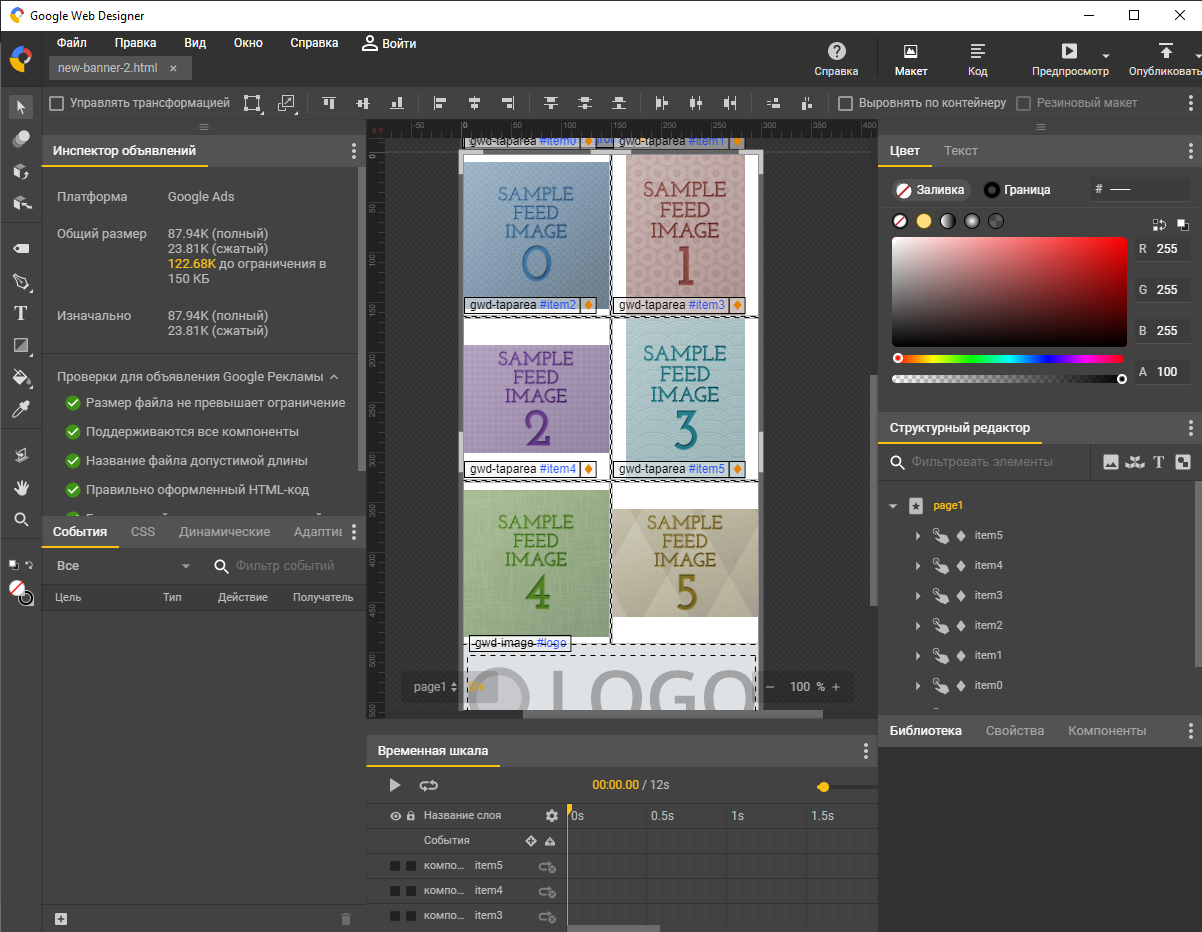 Импортируйте изображения в Google Web Designer и настройте их размер, положение и стиль.