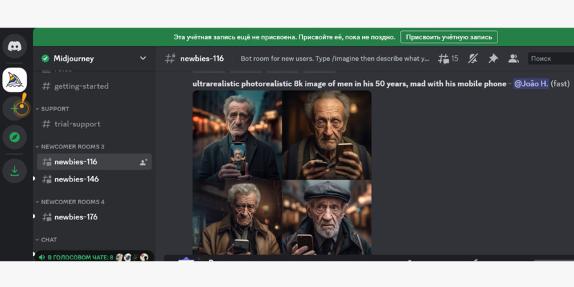 В чате вы увидите другие изображения, которые пользователи создавали с помощью нейросети Midjourney