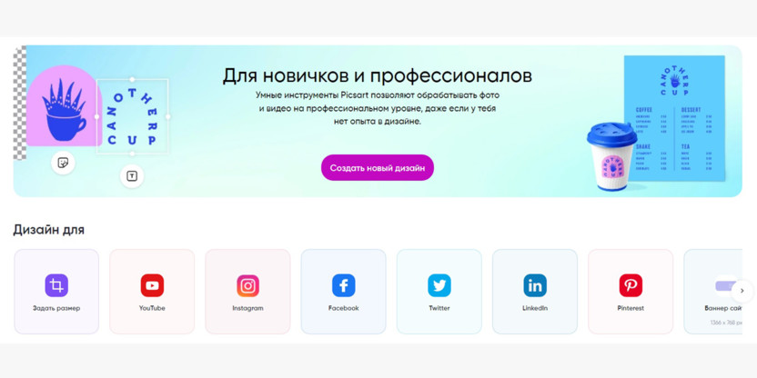 Онлайн-редактор доступен на ПК и заточен для создания креативов для соцсетей и рекламы в интернете. Научиться работать с редактором можно на небольшом бесплатном курсе «Дизайн для соцсетей с 0».