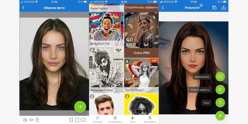 Мобильный фоторедактор для Android и iPhone позволяет создавать оригинальные арты на основе фото с помощью шаблонов и нейросети. Сервис может поменять стиль портрета, поставить новый фон и наложить графику. Доступно более 1000 шаблонов с масками и эффектами, которые ищутся по хештегам.