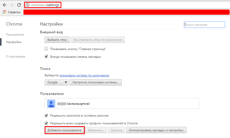 - Вернуться в настройки обозревателя и нажать на «Добавить нового пользователя».