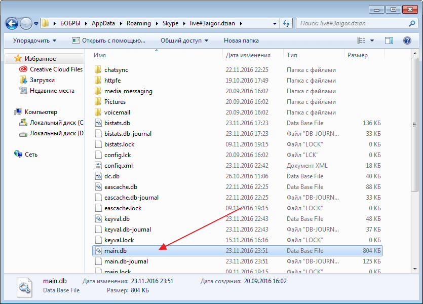 - В этой папке находятся файлы по всем аккаунтам от Skype, поэтому после перехода в неё, вы увидите логины, которые создавали даже несколько лет назад: